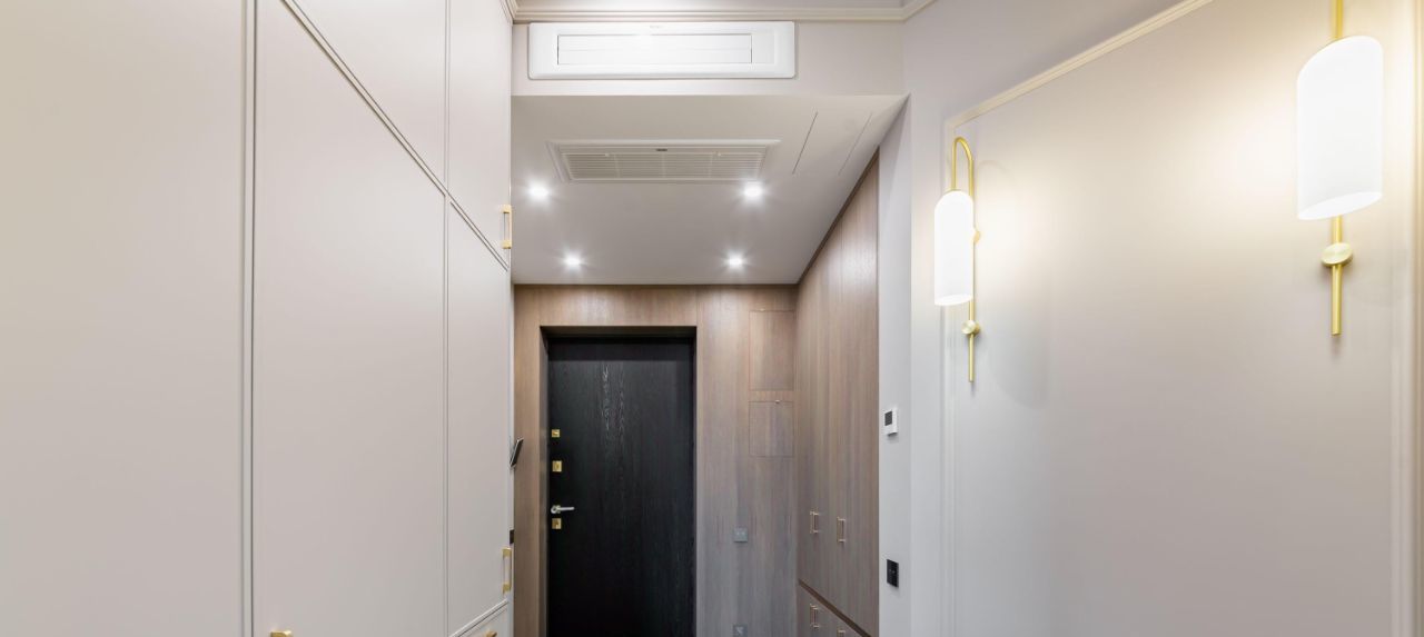 Планировка выстроена логично: отдельная спальня с выходом на балкон, кухня-гостиная, полноценная гардеробная и удобный холл. Пространство не перегружено — каждая зона работает на комфорт повседневной жизни.