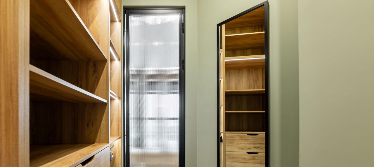 — гардеробная: системы хранения Egger, паркет