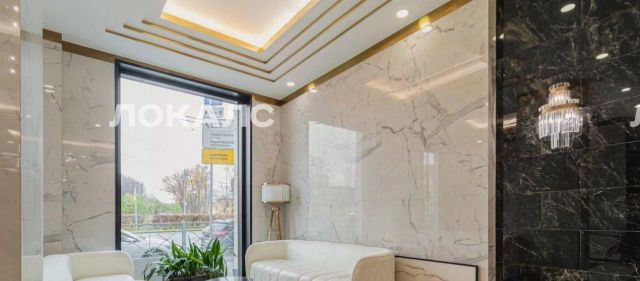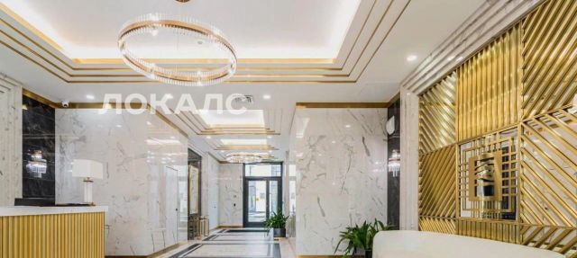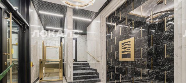 Парадный холл в стиле арт-деко, с отделкой под мрамор, круглосуточным постом охраны и консьерж-сервисом.