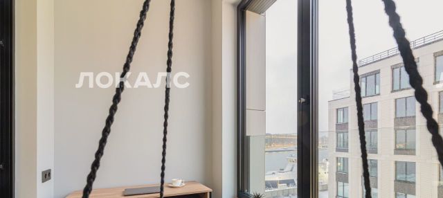 На балконе установлена система теплого пола, там же установлено большое рабочее место и уютная подвесная качель, расположившись на которой можно любоваться видом на воду.