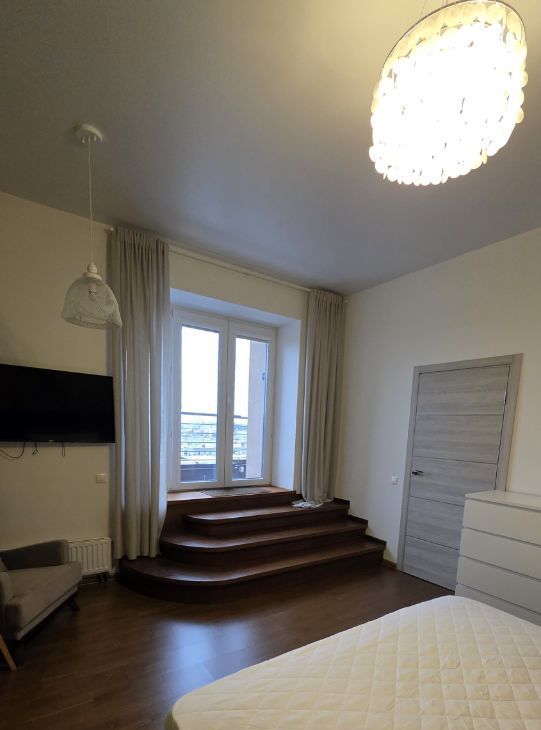 Уютная и свободная квартира с террасой, с большими комнатами и высокими потолками. Прекрасный панорамный вид на Петропавловку и водную гладь р. Ждановки. Сделан дизайнерский ремонт. Теплые полы. Вся техника в наличие. Сразу можно въезжать и жить.