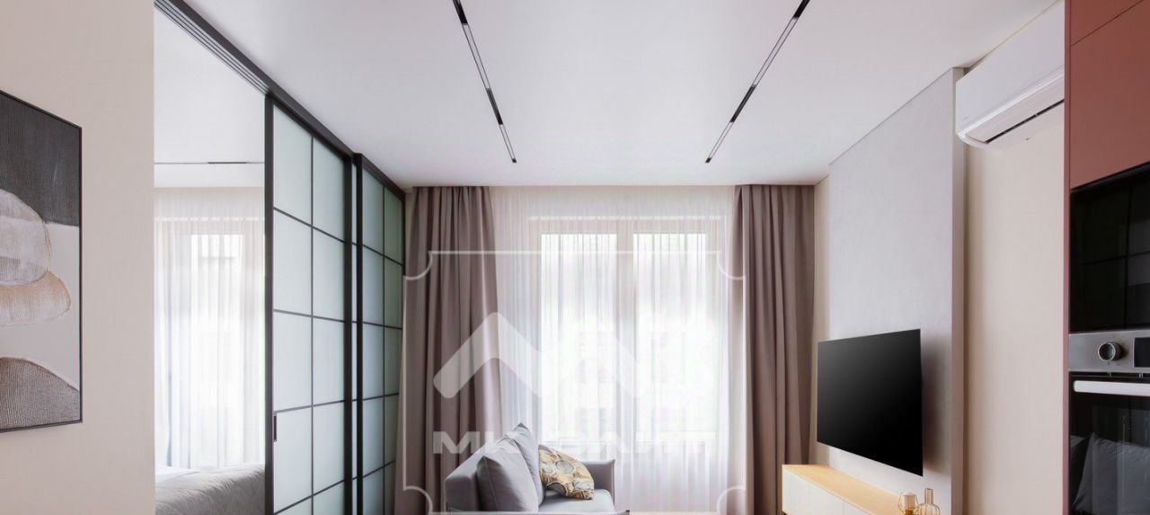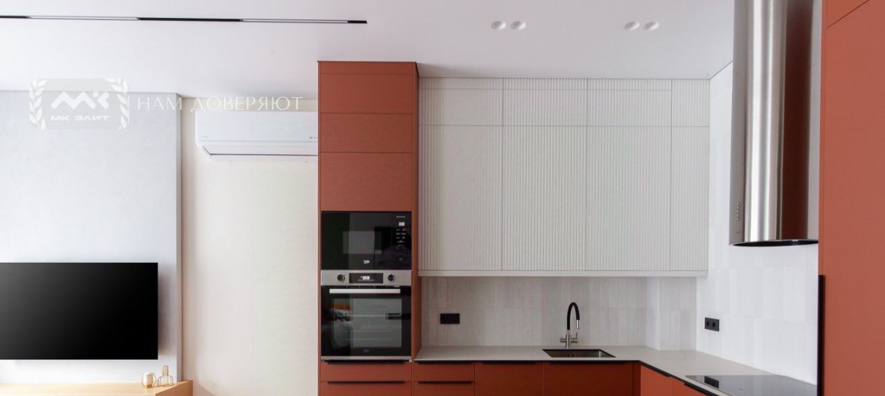 В квартире выполнен качественный дизайнерский ремонт. Мебель сделана по индивидуальному заказу. Есть вся необходимая бытовая техника, включая сушильную машину. Установлен мощный кондиционер.