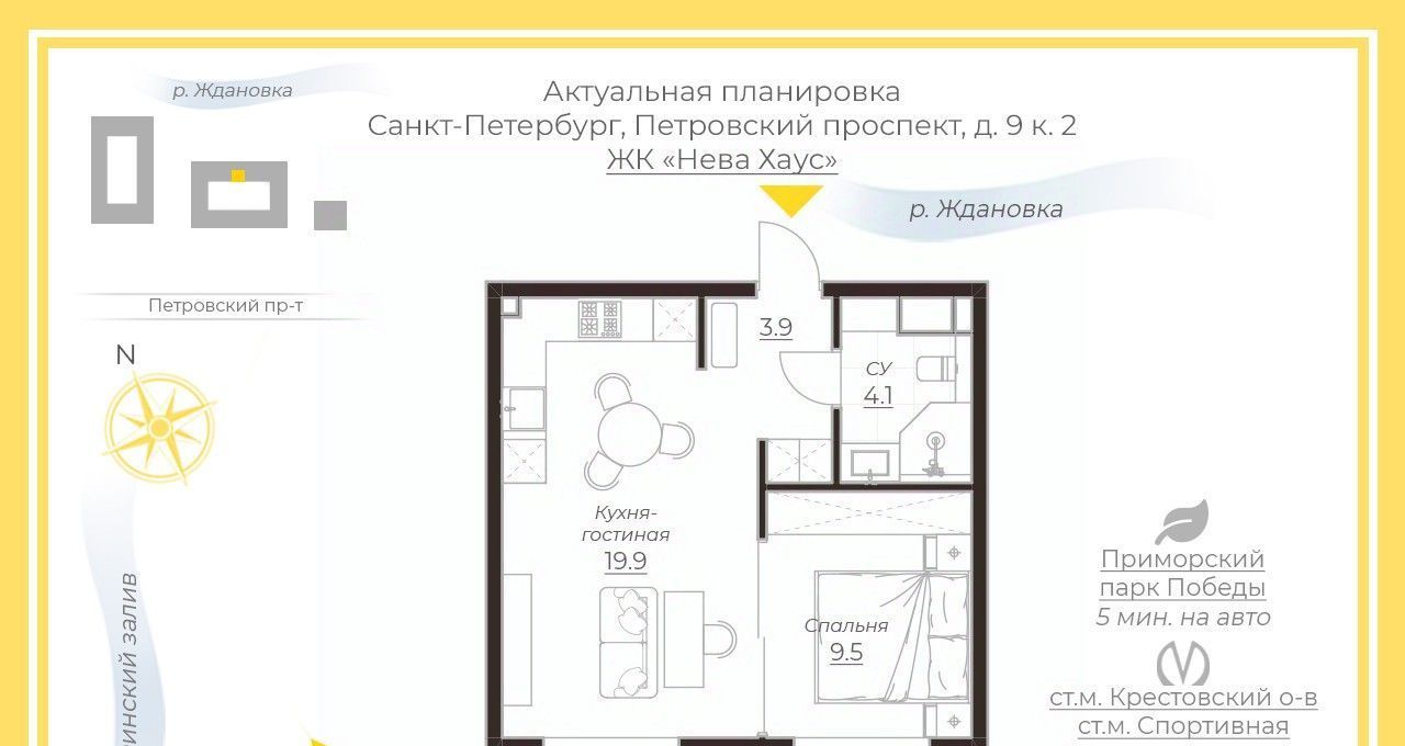 1-к кв. Санкт-Петербург Петровский просп., 9к2 (40.0 м²)