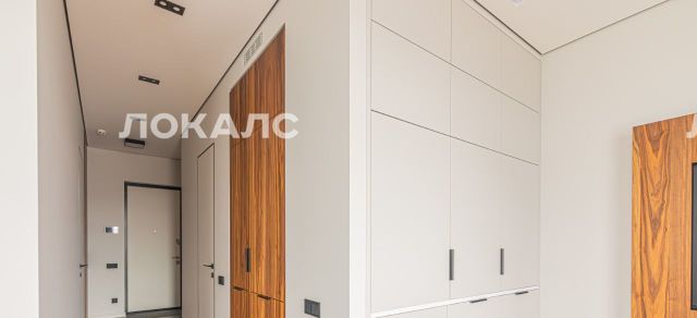 Умная организация пространства встроенная кухня с техникой за шпонированными фасадами, гардеробная и большой шкаф с продуманными системами хранения