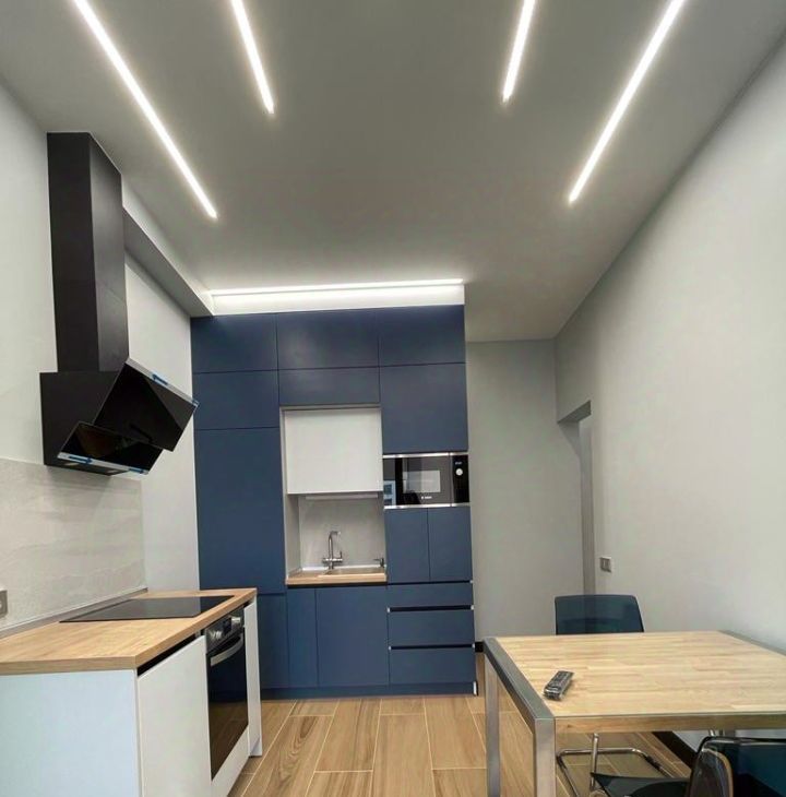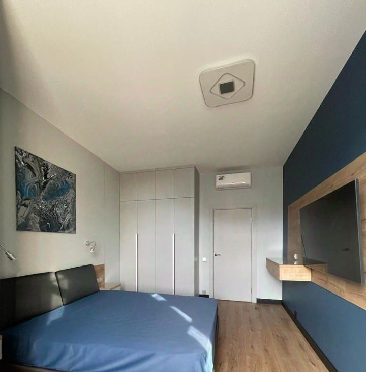 Квартира полностью меблирована и оснащена всей необходимой техникой - плита, духовой шкаф, микроволновка, посудомоечная машина, вытяжка, стиральная машина, телевизор, кондиционер. Есть электрический камин для создания романтического настроения.