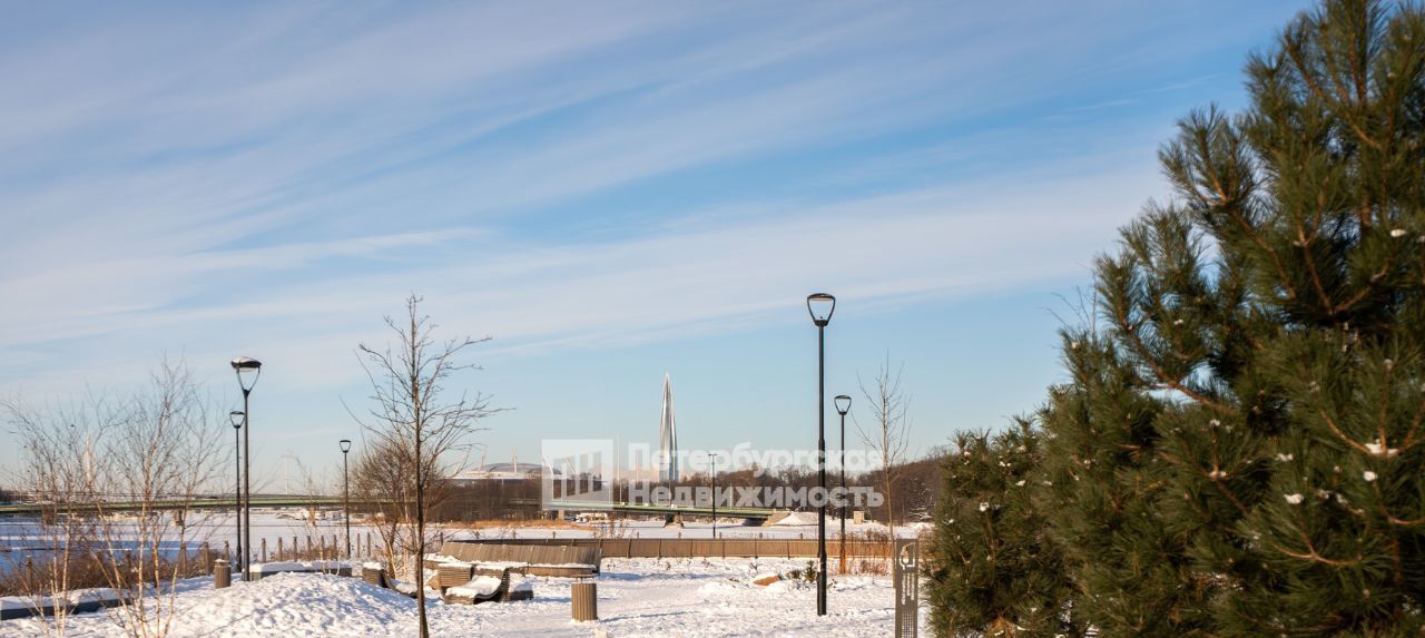 Территория благоустроена как единая прогулочная зона, с которой открываются живописные виды на Неву и Крестовский остров.