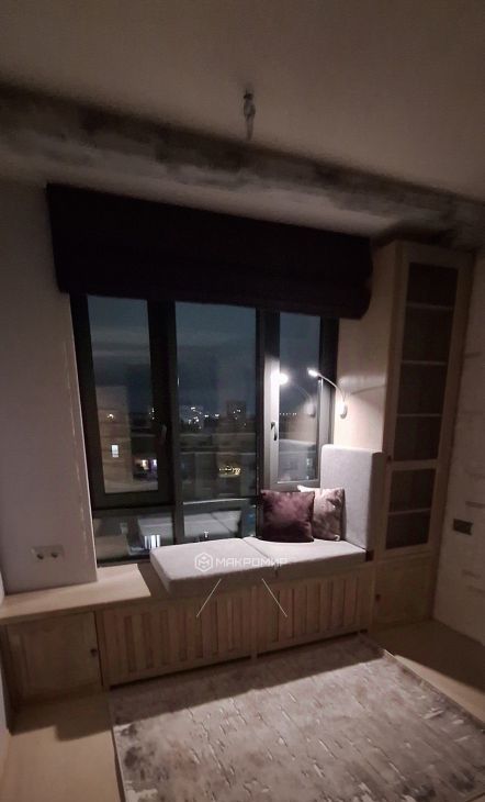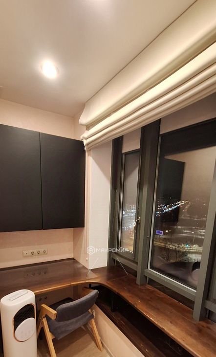 Утепленный балкон с оборудованным рабочим местом, большие окна, вид на сад "Нева" и Пискаревский проспект, на всех окнах римские шторы можно сделать почти полный блэкаут.