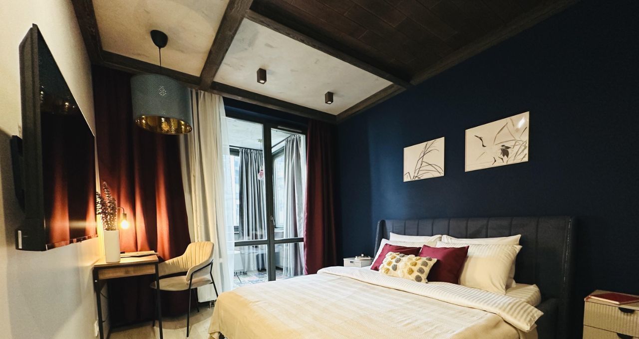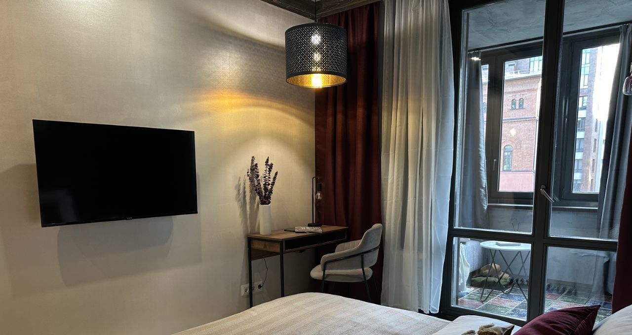 - В спальне кровать с ортопедическим матрасом. Из спальни выход на лоджию (с теплыми полами), где есть диван, который при необходимости раскладывается и становится полноценным спальным местом. - С лоджии открывается вид на Неву, ухоженный двор и великолепные закаты.