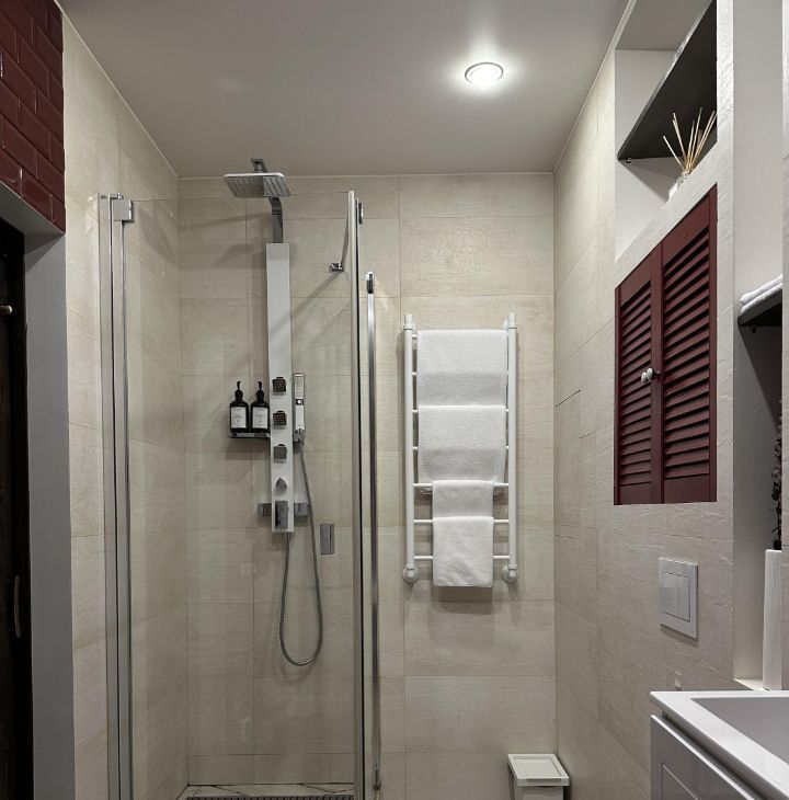 - Ванная комната оборудована и ванной, и душевой кабиной.