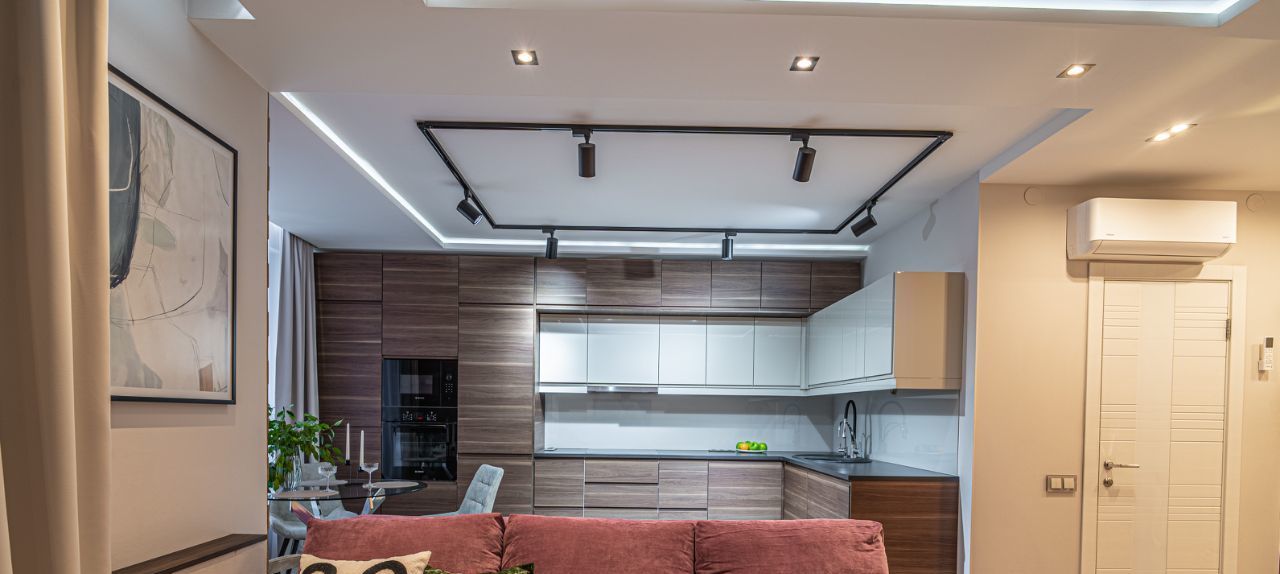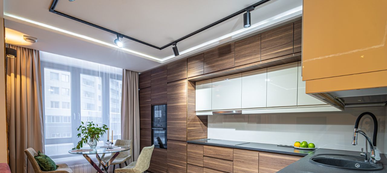 * Сердце этой квартиры — просторная и светлая кухня-гостиная площадью 32 м². Грамотное зонирование отделяет обеденную группу от зоны отдыха. Продуманное многоуровневое освещение позволяет менять сценарии вечера. Две системы очистки воздуха в зоне кухни гарантируют свежесть и идеальный микроклимат в доме. Кондиционер позволяет настроить индивидуальный климат в квартире в любое время года
