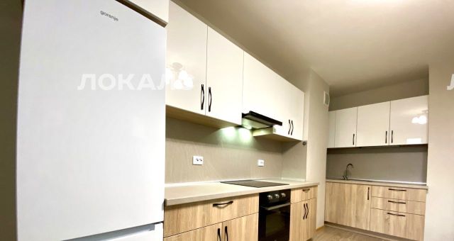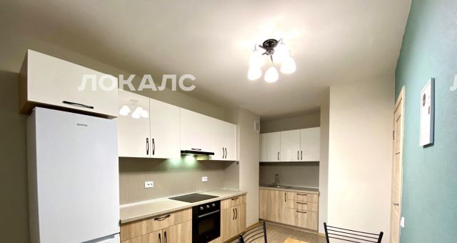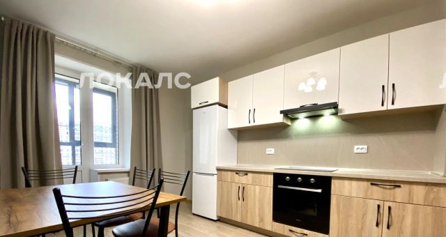 — просторная кухня, встроенный стильный кухонный гарнитур; духовой шкаф, электрическая варочная панель, вытяжка, холодильник; СВЧ-печь и чайник отсутствуют