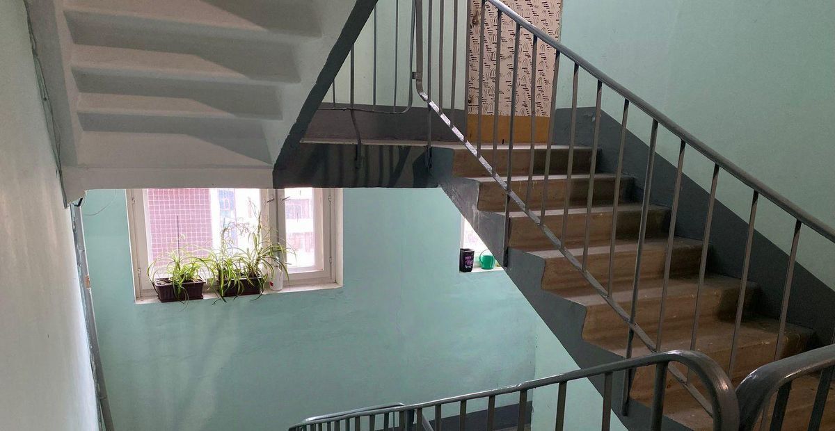 У квартиры имеется закрытый тамбур на две квартиры, который можно использовать как дополнительное место для хранения вещей, в том числе велосипедов.