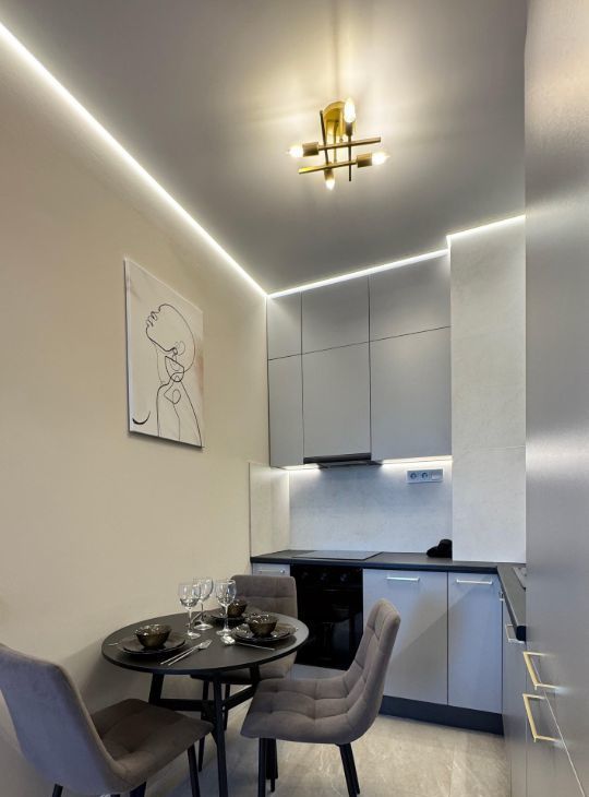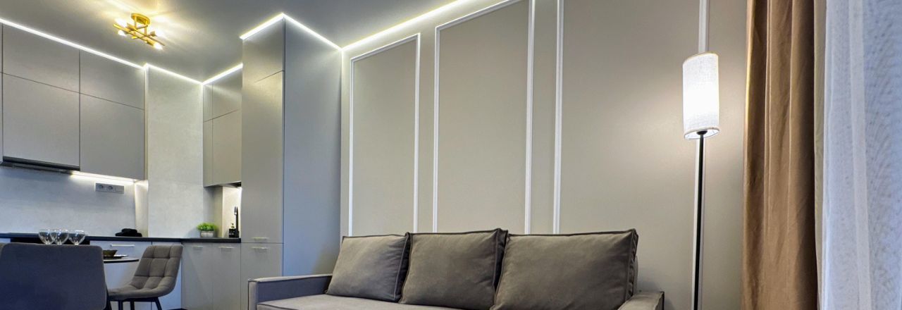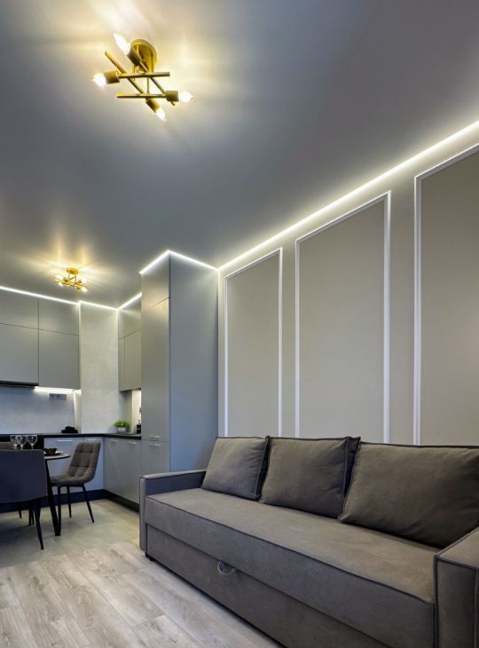 - стильная и функциональная кухня-гостиная