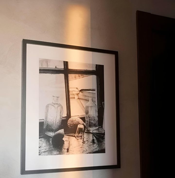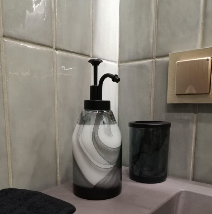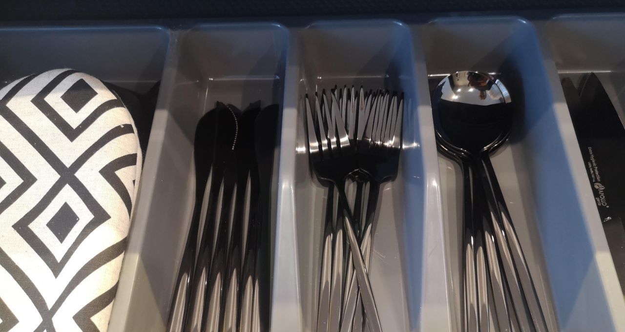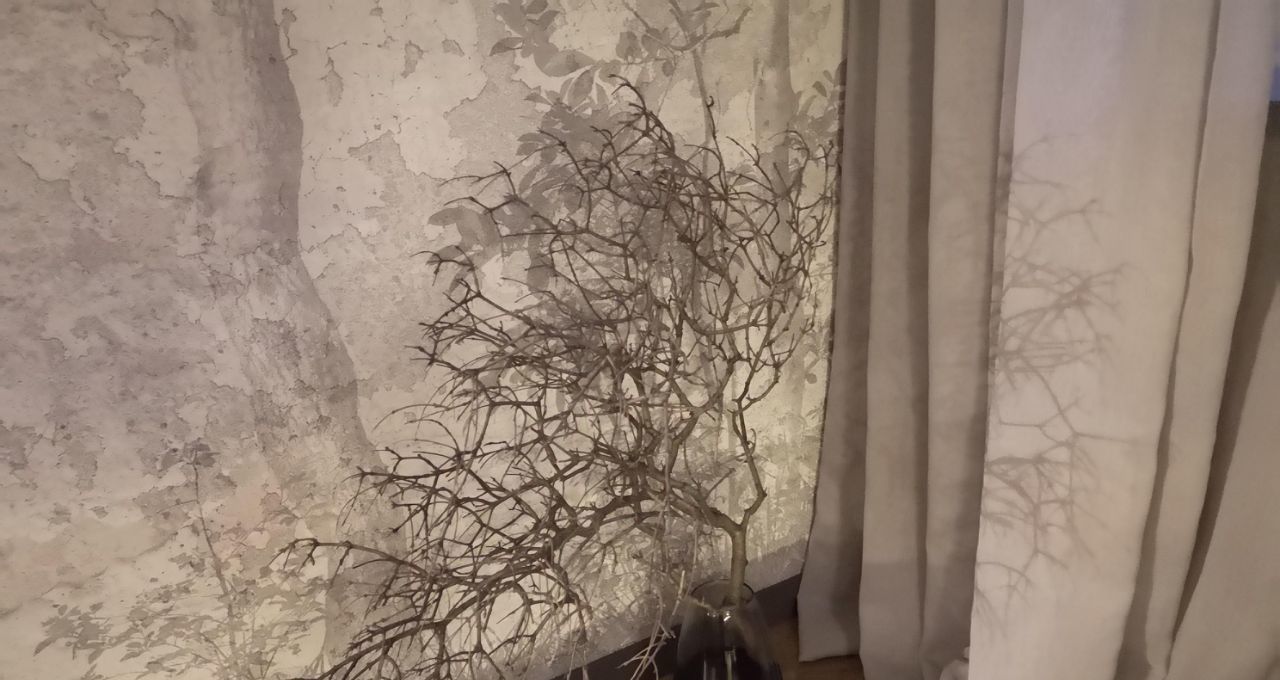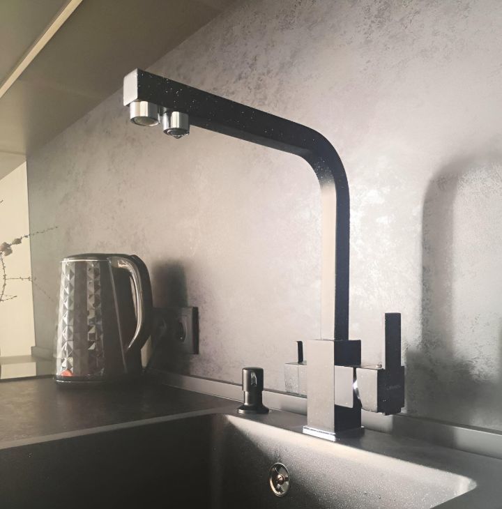 Кухонная мебель за счет фактуры и цвета полностью растворяется на фоне декоративной штукатурки стены, тем самым расширяя пространство. Кухня оснащена всем необходимым, а именно духовым шкафом, варочной поверхностью, большим холодильником, электрочайником, френч-прессом, бокалами для вина, шампанского и воды, стильной посудой и столовыми приборами на 6 персон, что позволит вам не только комфортно готовить, но и получать эстетическое удовольствие от приема пищи, сидя за элегантным столиком в удобных бархатных креслах-стульях.