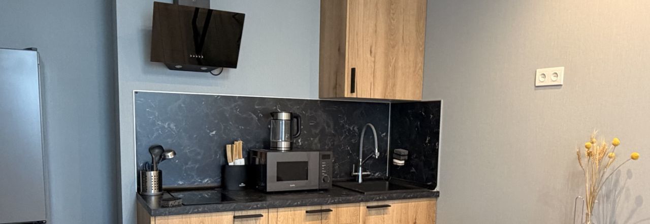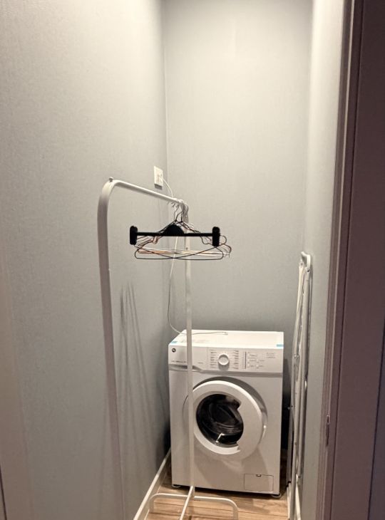 На кухне и в комнате есть вся необходимая мебель и техника для комфортного проживания, включая гардеробную и лоджию.
