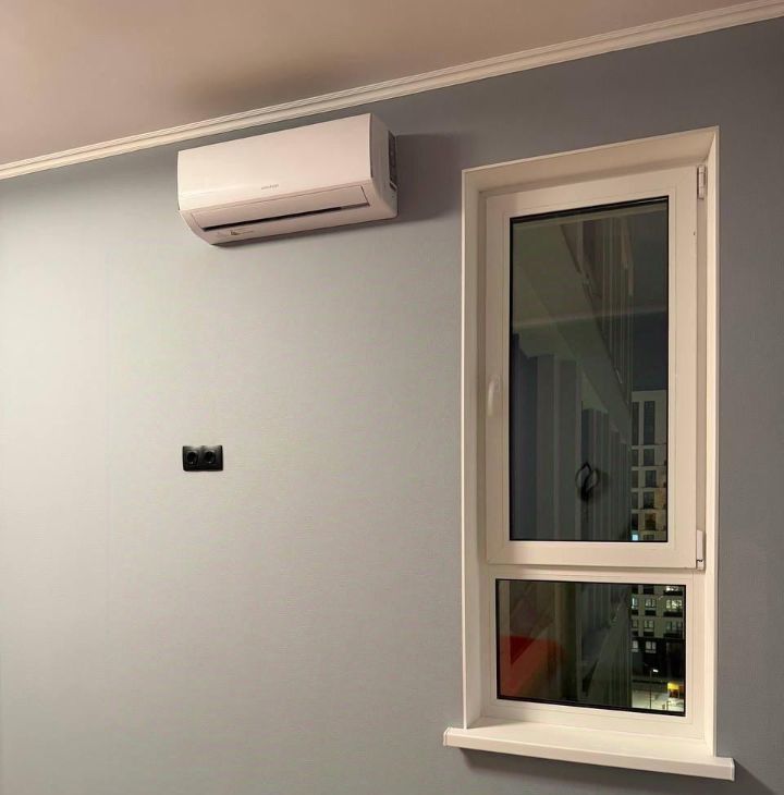 Установлены кондиционер, холодильник и стиральная машина. Просторная кухня и гостиная объединены в одно пространство.