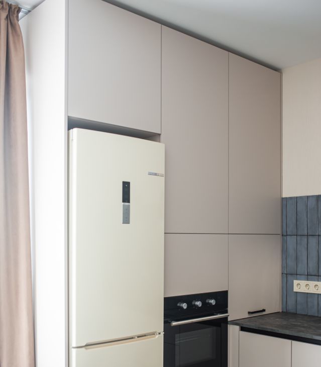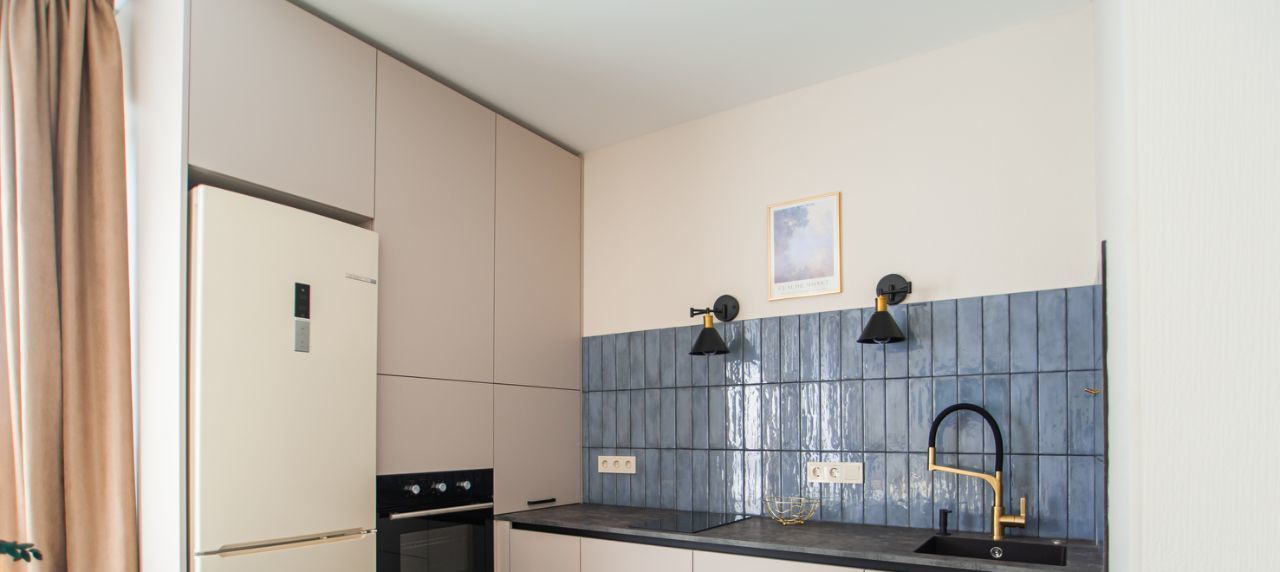 - кухня-гостиная со встроенной техникой: духовой шкаф с функцией СВЧ, варочная панель, холодильник, посудомоечная машина.