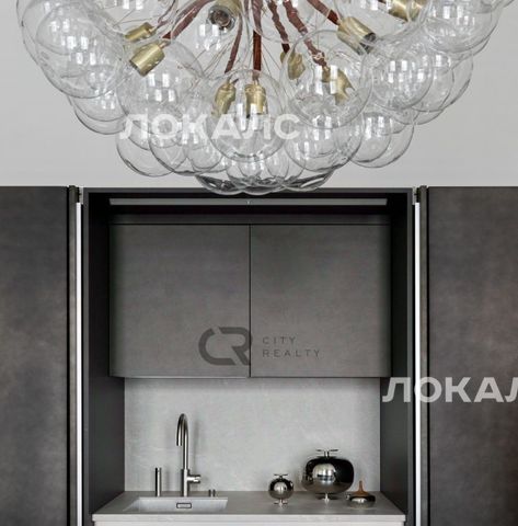 кухня Boffi, картина художника Кирилла Бородина, люстра Pelle Bubbles, торшер Ralph Lauren и Poliform.