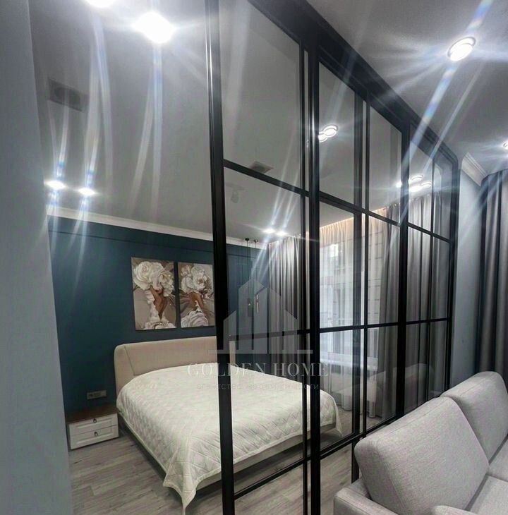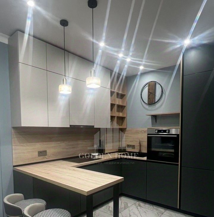 - Полноценная кухня с индукционной варочной панелью, вытяжкой, холодильником, чайником;