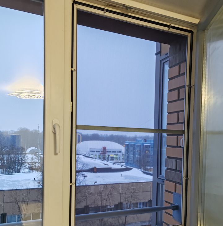 Большой застеклённый балкон (окна и балкон с москитными сетками).