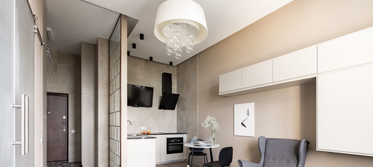 Современная планировка: спальня и кухня-гостиная — идеальный баланс уединения и общения.