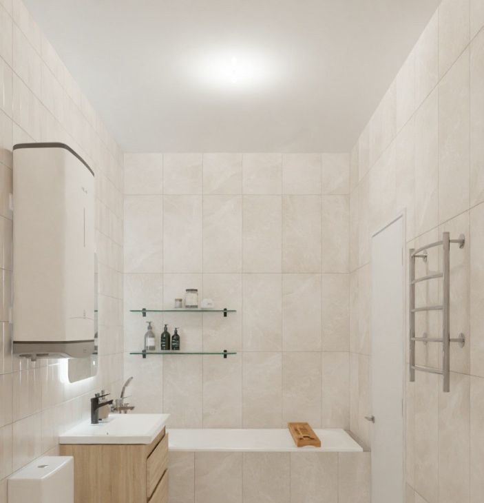 Сделаны отделочные работы качественными материалами, стены покрашены водоотталкивающей краской , перед покраской была подготовка с стекловолокном. Выложен ламинат, плитка , в зоне плитке все полы с подогревом. Сделана отделка в ванной комнате , вся сантехника закуплена. Есть проект ванной и кухни