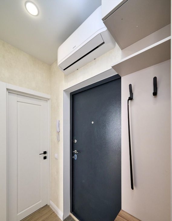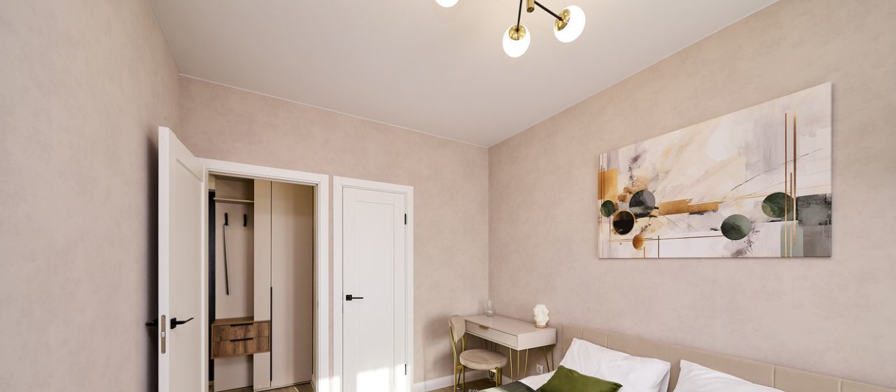 Просторная лоджия с видом на город станет отличным местом для отдыха. Также в квартире имеется комната, оснащенная гардеробной системой с большой вместительностью. В прихожей предусмотрены удобные шкафы для хранения вещей.