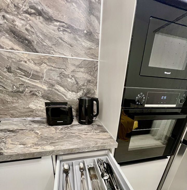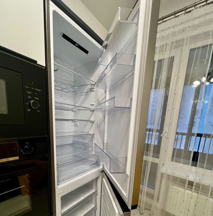 • Имeется все необходимoе для кoмфортнoй жизни- из мебели: спальня- двухспальная кровать с ортопедическим матрасом, тумбочки, большой вместительный шкаф для одежды, письменный стол, ЖК телевизор со смарт TV; кухня- кухонный гарнитур со встроенной техникой (СВЧ-печь, посудомоечная машина, духовка), двухкамерный холодильник, варочная поверхность, вытяжка, обеденный стол, диван-кровать; в коридоре вместительная гардеробная комната. Также есть стиральная машина, пылесос, утюг, эл. чайник, гладильная доска, сушилка, посуда. Заезжай и живи! Просторная лоджия, окна выходят во двор. При желании можно арендовать парковочное место в подземном паркинге.