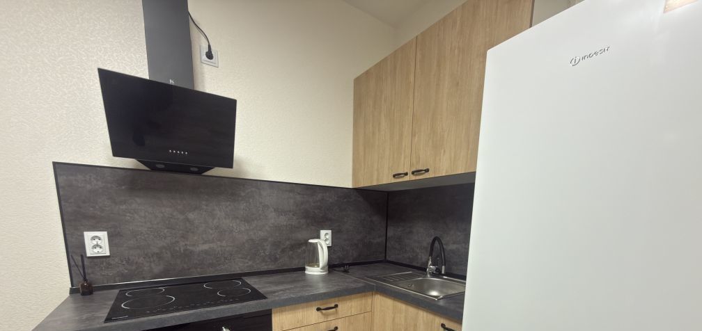 Квартира полностью готова для комфортного проживания. В комнате и на кухне есть вся необходимая мебель. На кухне установлены холодильник и стиральная машина. В ванной комнате есть ванна, совмещённый санузел. Изюминкой квартиры является наличие балкона, где можно наслаждаться утренним кофе.