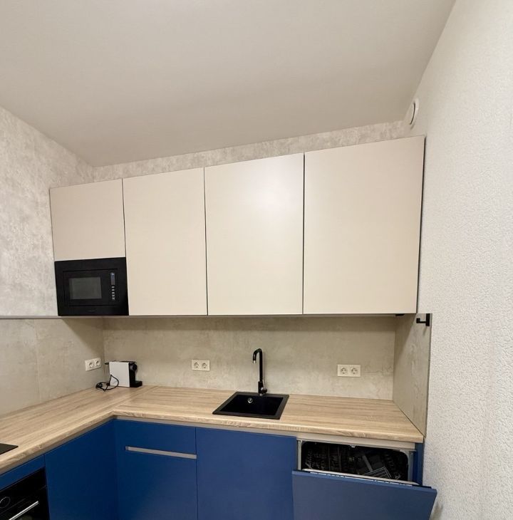 Полностью оборудованная кухня: встроенная техника, посудомоечная машина, духовка, вытяжка, холодильник. Есть стиральная машина. Всё новое и в отличном состоянии.