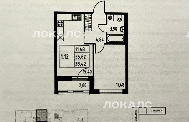 1-комнатная квартира: Санкт-Петербург, проспект Просвещения, 5к1 (38.5 м²)