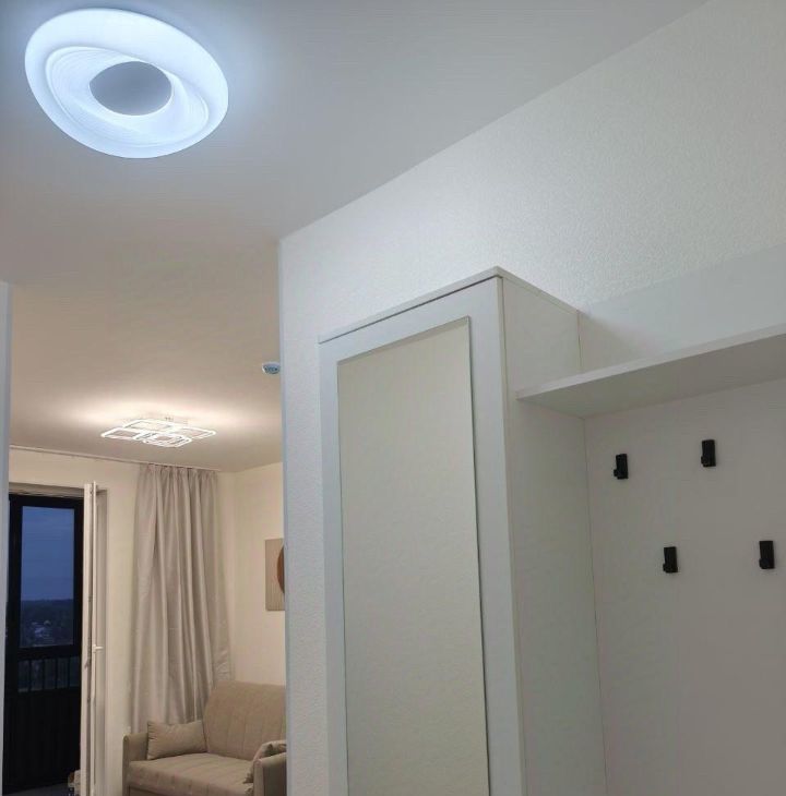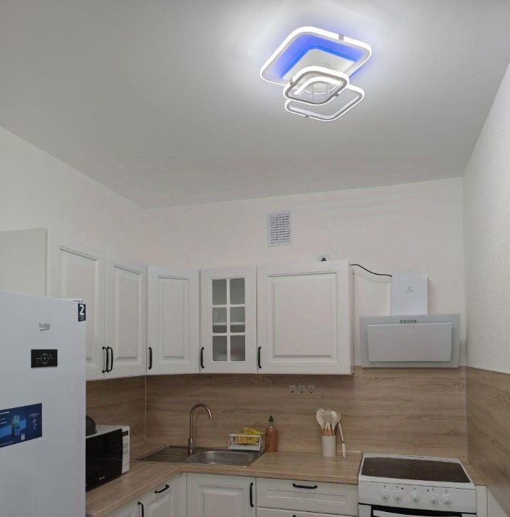 - современные светодиодные люстры с меняющейся теплотой освещения и цветом подсветки