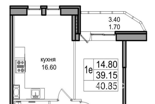 1-к кв. Санкт-Петербург пос. Парголово, проезд Толубеевский, 14к1 (38.5 м²)