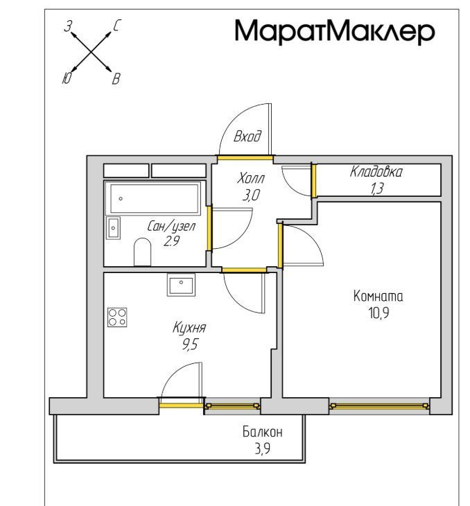 Квартира с балконом расположена на 10-ом этаже, действительно КОМФОРТНАЯ планировка. Квартира включает в себя: вместительную кухню ПРАВИЛЬНОЙ ФОРМЫ - 9,5 м2, есть вся необходимая кухонная техника: варочная панель, вытяжка, холодильник, микроволновая печь, чайник, стиральная машина в ванной комнате.