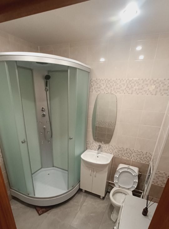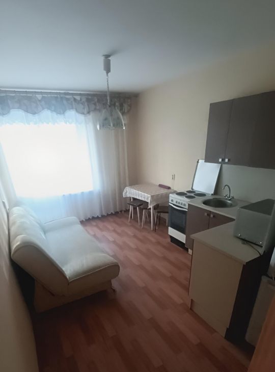 В квартире выполнен косметический ремонт. В комнате и на кухне есть вся необходимая мебель. К вашим услугам современная техника: холодильник, телевизор и стиральная машина. Санузел совмещенный и оборудован душевой кабиной. Кроме того, есть балкон, где можно наслаждаться свежим воздухом.