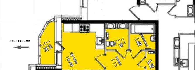 ВАННАЯ КОМНАТА: 3,4 м². Есть место для стиральной машины и шкафа.