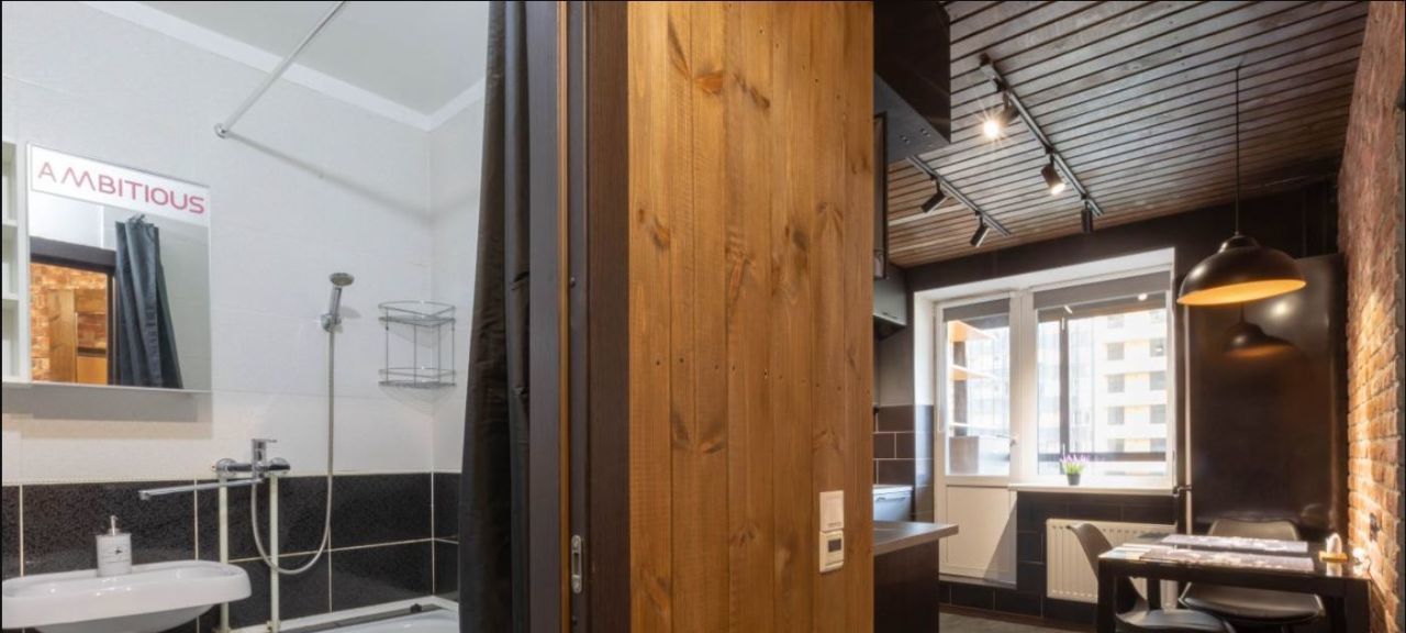 Интерьер квартиры выполнен в стиле лофт. В квартире есть всё необходимое для комфортного проживания. На кухне и в комнате установлена современная мебель. Из техники — телевизор, стиральная и посудомоечная машины, а также холодильник. Квартира оснащена интернетом, позволяя постоянно оставаться на связи и работать удалённо. Из окон открывается вид во двор, что обеспечивает тишину и спокойствие. Также в квартире есть лоджия, где можно приятно проводить время.