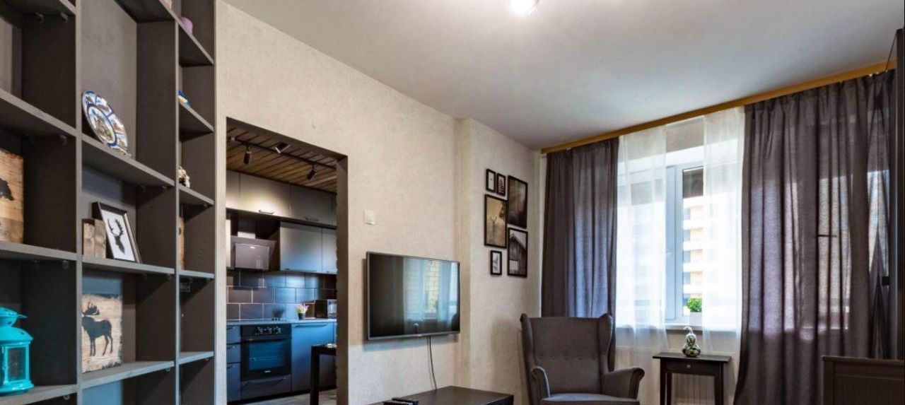 Стильная 1-комн. квартира, 35 м², с дизайнерским ремонтом в Выборгском районе, по адресу: Федора Абрамова д. 4, корпус 4.