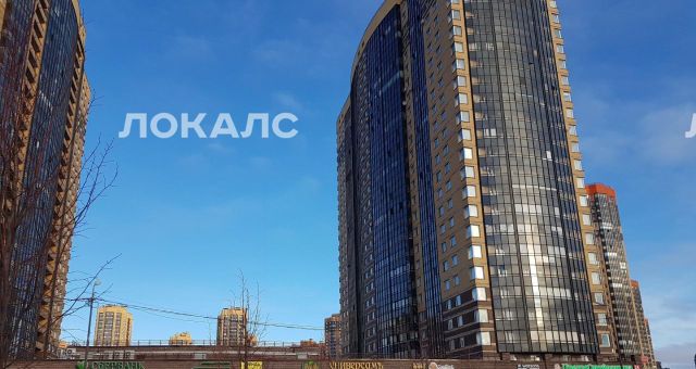 1л. Федора Абрамова 4, крайняя правая башня. 1й этаж дома - магазины, кафе, сбербанк, и т.д.