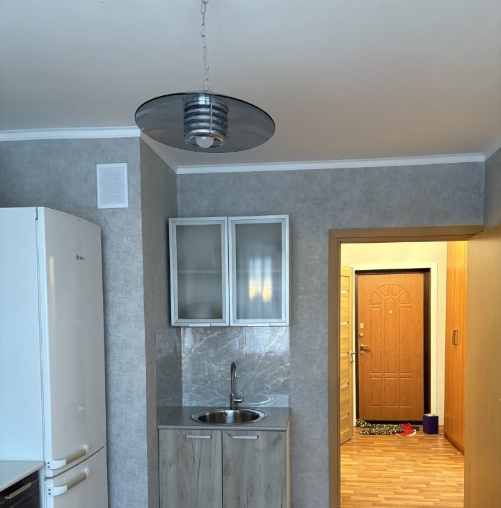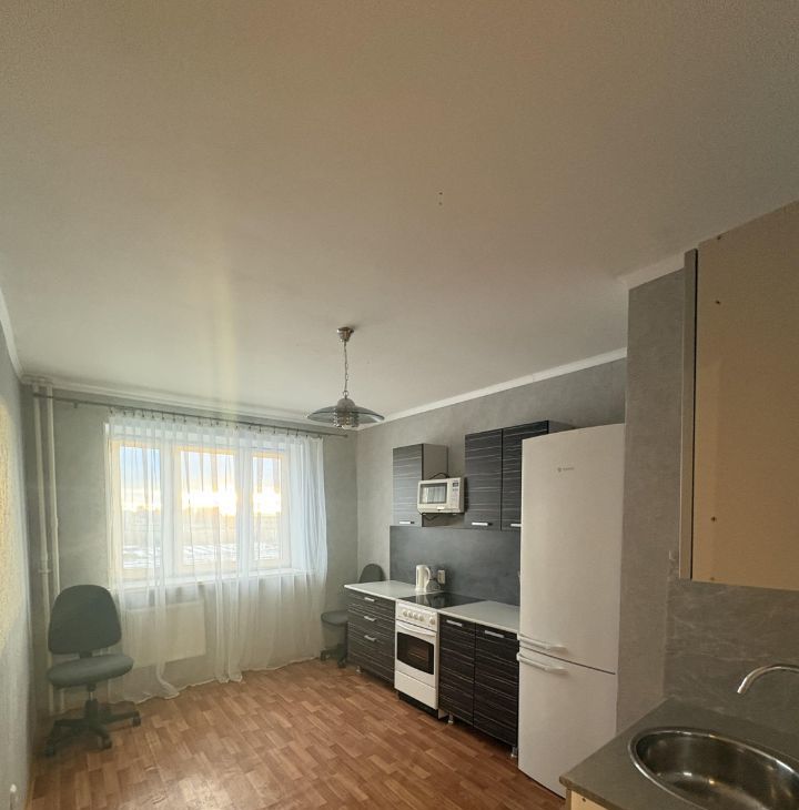 В квартире сделан косметический ремонт. В наличии вся необходимая мебель: на кухне и в комнате. Установлены холодильник и стиральная машина, что делает проживание комфортным. Планировка включает совмещённый санузел и балкон, где можно наслаждаться видом на город.