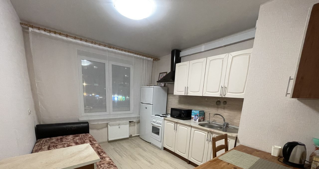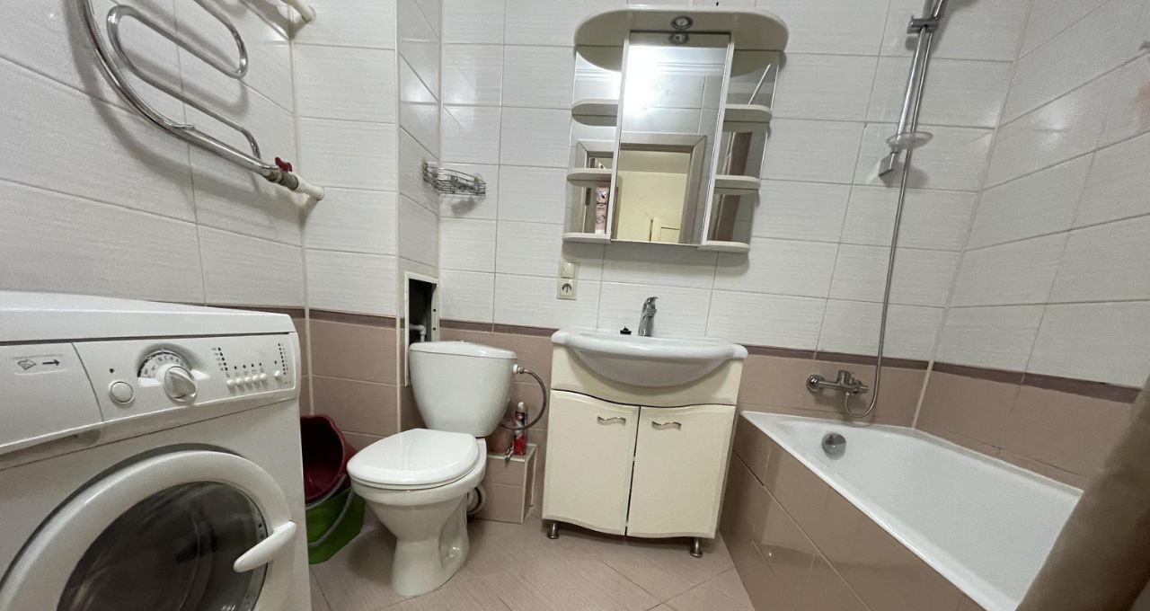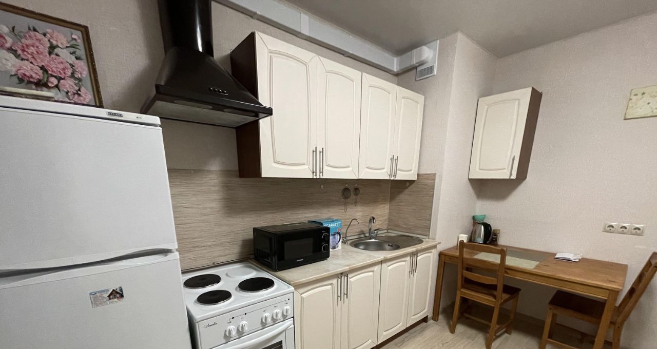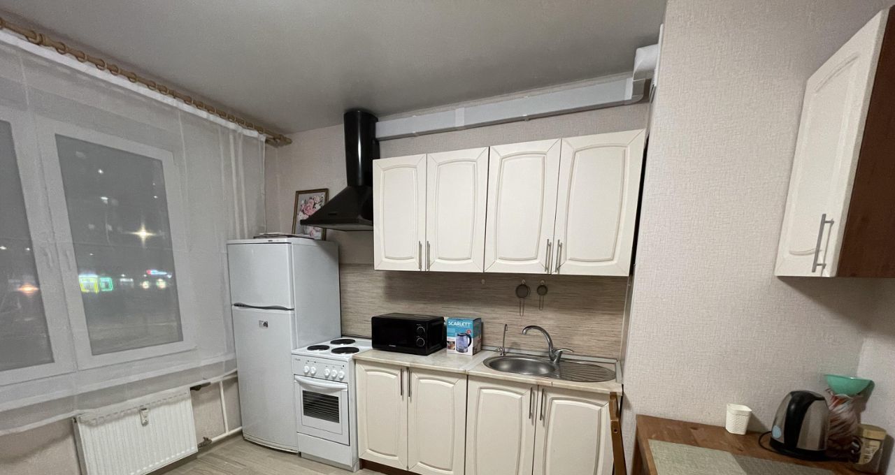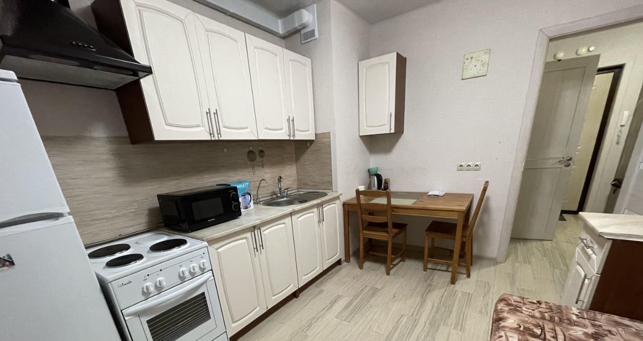 В квартире есть все необходимое для комфортного проживания. Просторная кухня оборудована мебелью и техникой, включая холодильник и стиральную машину. В комнате также есть мебель и телевизор. Совмещенный санузел с ванной предоставляет все условия для отдыха. Подключен интернет, поэтому можно легко работать или учиться из дома.