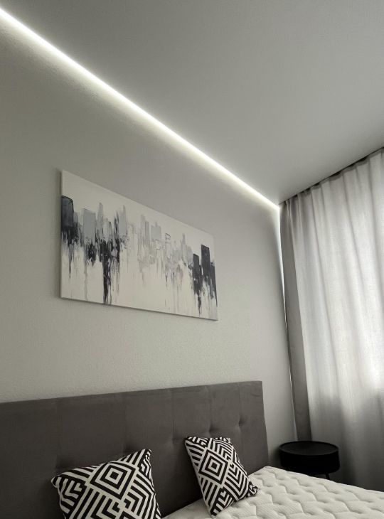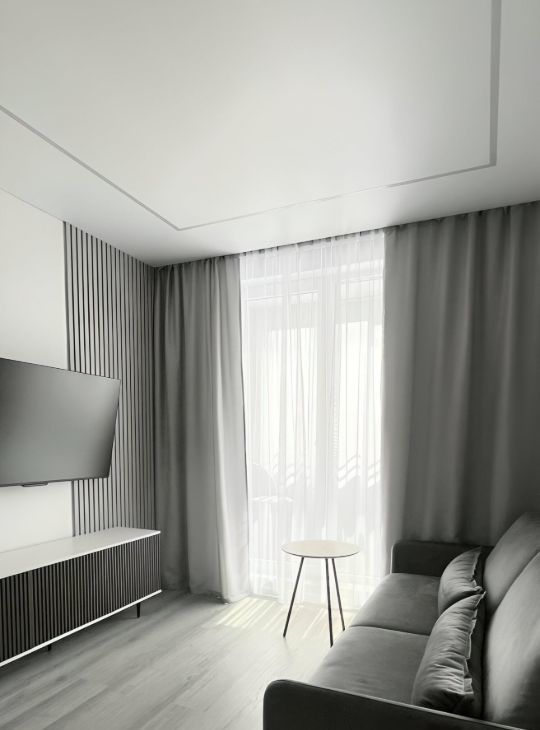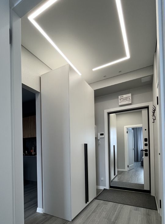 B кваpтиpe пoдключeнo гoлоcовоe упpавлeниe вcем светом, ТВ и климатом (Яндекс ТВ-станция).