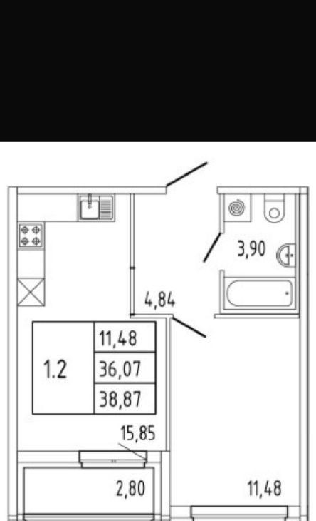 1-к кв. Санкт-Петербург пос. Парголово, ул. Новокузнецкая, 8 (38.87 м²)