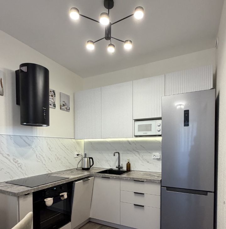 Из бытовой техники есть стиральная машина, посудомоечная машина, телевизор, духовой шкаф, варочная панель, микроволновая печь.