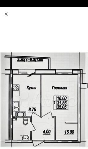 1-к кв. Санкт-Петербург пос. Парголово, ул. Тихоокеанская, 1к2 (32.0 м²)