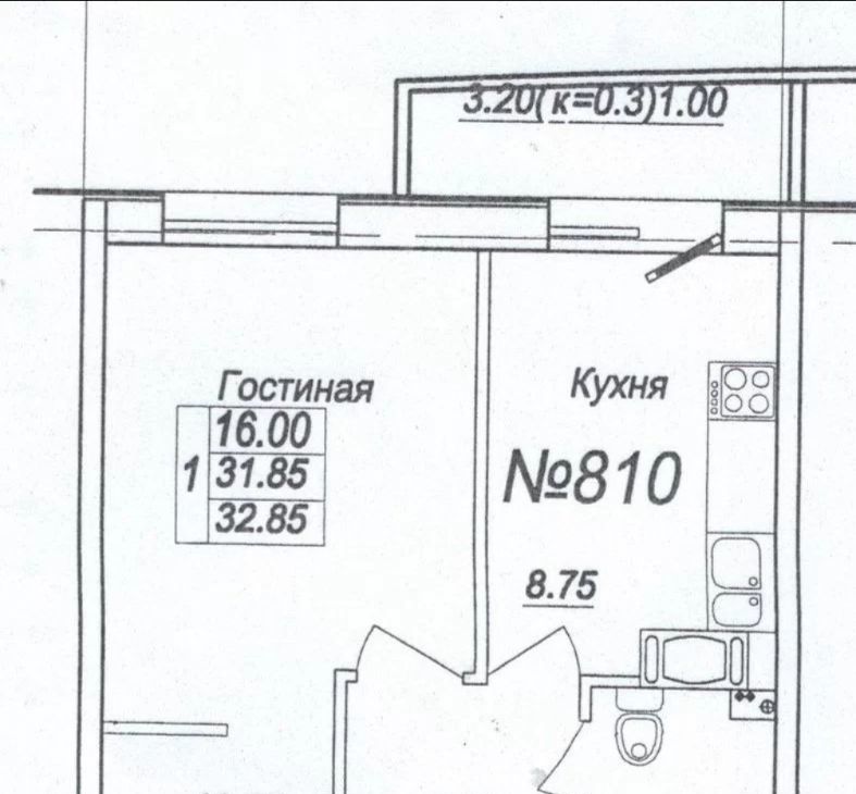 1-к кв. Санкт-Петербург пос. Парголово, ул. Тихоокеанская, 1к2 (32.1 м²)