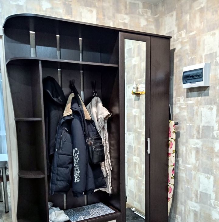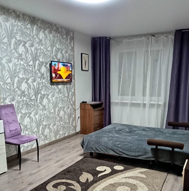 От нас: вместительный холодильник, плита, чайник, тостерница, пылесос, стиральная машина, угловой шкаф, прикроватный тумбы, тумба с зеркалом, утюг, доска гладильная, сушилка, телевизоры на кухне и в комнате, удобный двуспальный раскладной диван-кровать в комнате и диван на кухне. Шторы блэкаут. Кухня и холл укомплектованы удобной и функциональной мебелью. На кухне есть посуда.