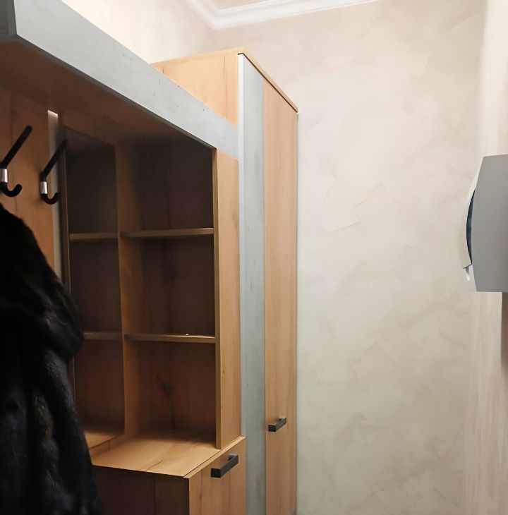 Квартира оборудована кухонным гарнитурой, плита, стиральная машинка, холодильник, в коридоре вешалка с зеркалом и полками. В комнате 2-х спальный раскладной диван , шкаф и полки, компьютерный стол. Торг возможен.