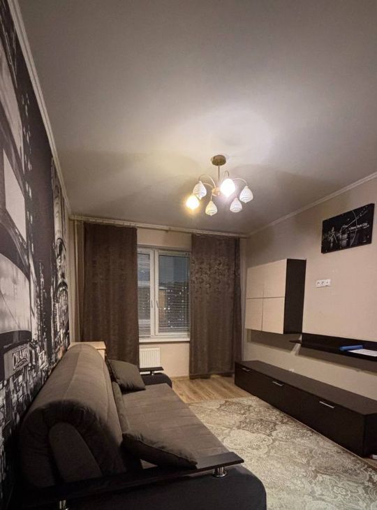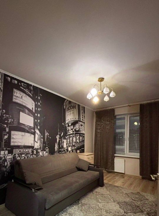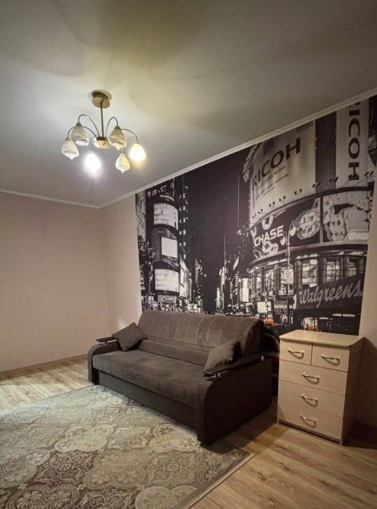 Квартира: просторная кухня, удобная комната с большим диваном, вместительные комоды для хранения, отдельный гардероб, совмещённый санузел и балкон.