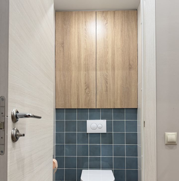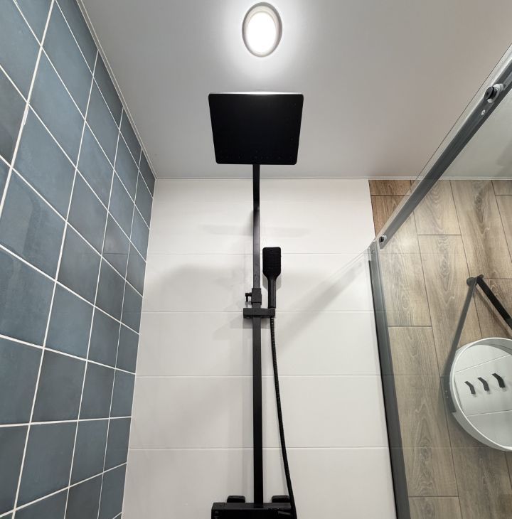 В ванной комнате — простроная душевая, теплый пол, электрический полотенцесушитель, вытяжка и зеркало с подсветкой. Санузел раздельный.